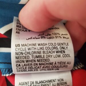 Color: Red, white, blue stripe. Black lace