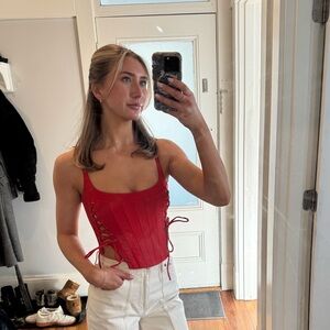 White Fox Boutique Red Lace-Up Corset Tank Top