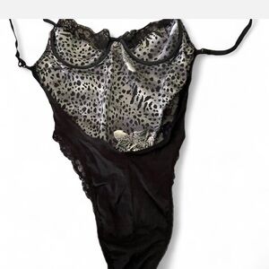 Vintage Shirley of Hollywood one piece lingerie. Indulge in elegance with this stunning black & grey lace lingerie bodysuit with underwire and adjustable straps and snap closure at bottom. Like new. NWOT Never worn. Late 80’s. #lingerie #vintage # goth #coquette