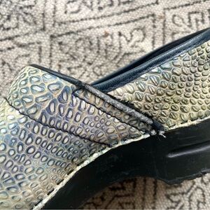 Comfortable slip-on clogs by Sanita. Sanita (The Original Danish Clog) Euro size 40/US size 9.5. Textured Embossed Lizard-skin or Snake-skin or Crocodile-skin. Sanita has the best colors, textures & patterns, and this one is no exception.
