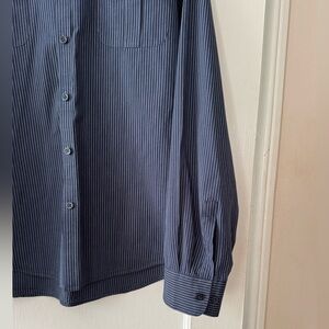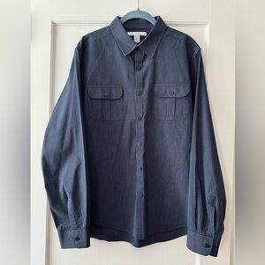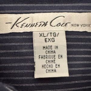 Kenneth Cole New York Navy Striped Button Down Long Sleeve Shirt Size XL