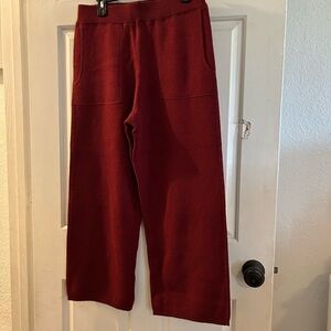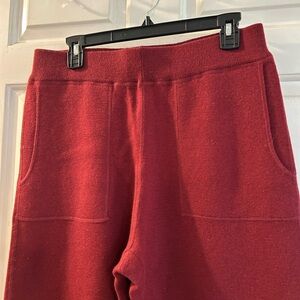 Soft knit wide-leg pants from J. Crew. Elastic waistband with front patch pockets. Comfortable and relaxed fit. Rich deep red color suitable for cozy outfits.NWT