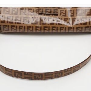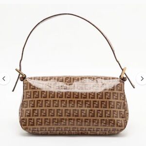 Authentic Fendi Zucchino Mamma Baguette Coating Canvas Shoulder bag Brown. Please refer to the pictures for wear from use. There is a small stain on the inside of the purse shown in the pictures that is not visible on the outside.