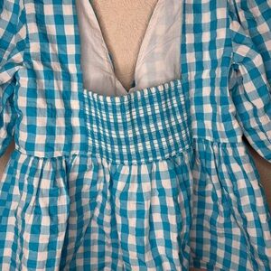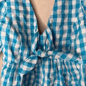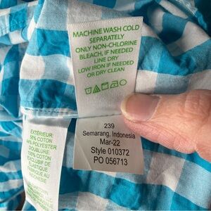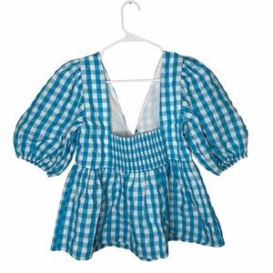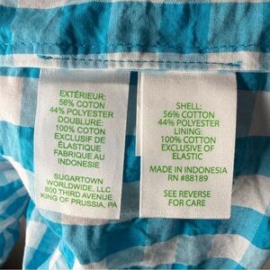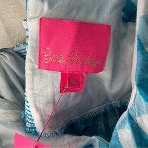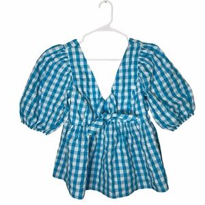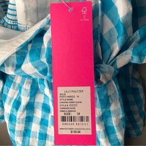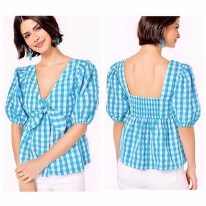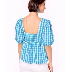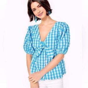 NWT Lilly Pulitzer Sarafina Short Sleeve Top Women’s Size 10 Turquoise Oasis Crinkle Gingham Retail $138.