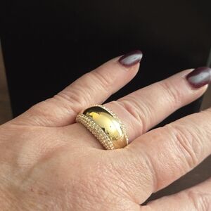 Swarovski Gold Tone Pave Crystal Wide Dome Ring | Size 7.75 Statement Band