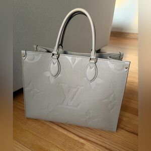 Authentic Louis Vuitton Turtledove Giant Monogram On the Go MM Tote