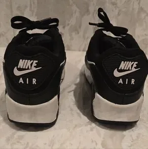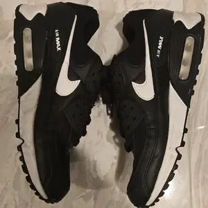 Classic Nike Air Max sneakers in black with white accents. Iconic swoosh and Air Max branding. Cushioned visible air unit for comfort. Clean, versatile look.