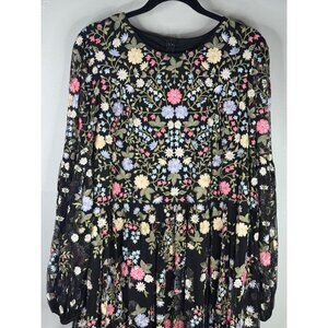 Mac Duggal 35161 Black Floral Embroidered Maxi Evening Dress Gown Size 16 NWT