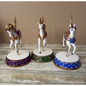 Hamilton Collection Jeweled Unicorn Carousel Collection Figurines 2004 Set of 3