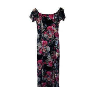 Black Pink Floral Bodycon Maxi Mesh Dress Spring Easter Long Pullover SZ M