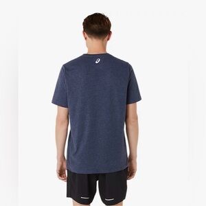 Comfortable navy crew neck tee with a bold American-flag inspired Asics logo on the chest. Soft, breathable fabric for everyday wear and easy layering. Classic fit designed for all-day comfort in navy.