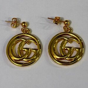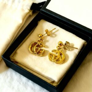 Elegant Gucci earrings featuring interlocking G logo pendants. Polished gold-tone finish for a refined look. Lightweight drop studs that elevate everyday and evening outfits. Includes classic Gucci branding for signature style.