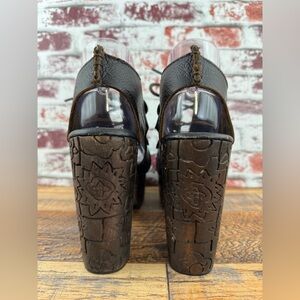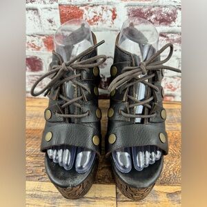 Free People FARRAH Dark Brown Leather / Wood Platform Heels, Women's Size 38