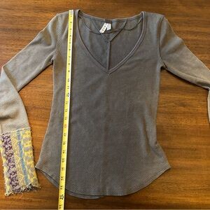 Free People Art School Button Cuff Thermal Green Long Sleeve V-Neck size Small