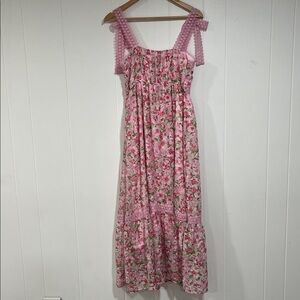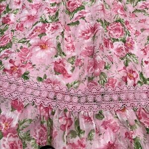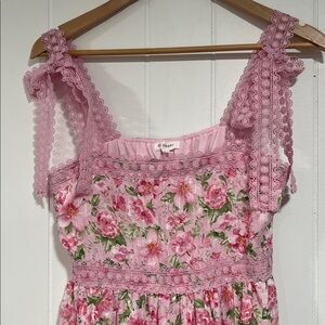 Blu Pepper Pink Floral Dress Cottagecore Lace Trim Feminine Romantic Summer M
