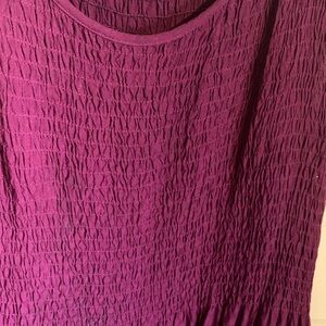 Sleeveless maxi dress with textured bodice and flowing skirt. Lightweight, breathable fabric offers easy movement. Simple silhouette works for casual or dressed-up looks. Pull-on style for effortless wear.