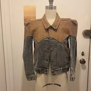 R13 Two-Tone Suede Yoke Denim Jacket - Brown & Gray