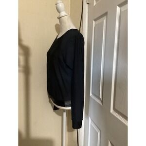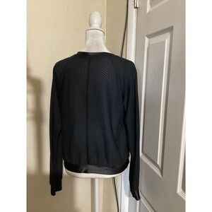 Koral Women Black Honeycomb Mesh Satin Trim Long Sleeve Activewear Top Small