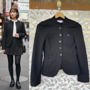 UMA Estnation Black Military Blazer | Dark Academia Stand Collar Jacket | Structured Utility Core size 38 /XS Elevate your Dark Academia wardrobe with this stunning UMA Estnation tailored blazer. Featuring a unique military-inspired stand collar and utility-style pocket detailing, this piece offers a sharp, disciplined silhouette. Made in Japan from a premium wool blend, it’s the ultimate Corporate Goth or Military Chic staple for those who value structure and high-quality craftsmanship.