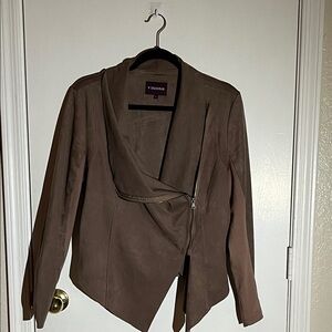 Vigoss Size L Chocolate Brown Suede Asymmetrical Zip Jacket