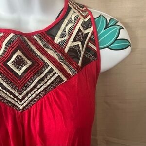 Byer California Red Black Blouse With Tribal Collar Print