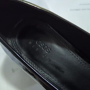 ASOS DESIGN Black Patent Heeled Loafers with Gold Chain – US 7 / UK 5W / EU 38