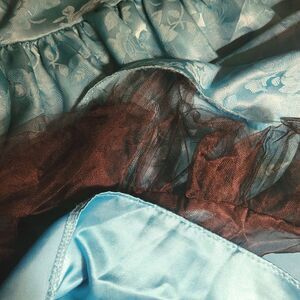 Y2K Vintage Jessica McClintock Gunne Sax Aqua Coquette Floral Mini Prom Dress 3