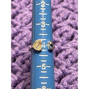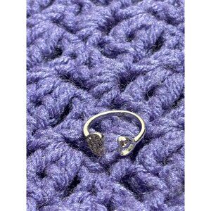 Silvertone Ring Size 4 Two Hearts Clear Rhinestones