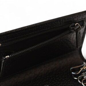 Brand: GUCCI Gucci Item Key Case Shape number 033 0856 Category Unisex ColorBlack Hardware ColorSilver Country of origin Republic of Italy Material Genuine leather Size W10.8cm (4.25in) x H7.2cm (2.83in) x D2.5cm (0.98in) Specifications Material Genuine leather Opening: Snap closure Inside: 1 zipper pocket. 2 open pockets. 1 removable key ring. 6 hooks Accessories Box Item Description Key Case from Gucci. The classic and elegant design is made of Gucci's iconic Sherry line and black pigskin leather. The inside has a six-key ring. Making it very practical. Condition Rank NS Outlet. New used. Unused. And in storage. Outside No noticeable scratches or stains. Inside-- There are no noticeable scratches or stains. There are no noticeable scratches or stains. There is discoloration on the rings. The large key ring is hard to open and close. So you need to have a knack for it. Pull the square hardware part at the base and rotate it backward.