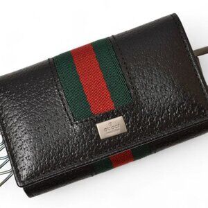 Gucci Outlet Key Case Key Holder 6-stacks Pigskin Sherry Line Black 033
