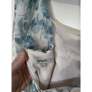 Minuet Blue White Floral Chiffon Maxi Dress Square Neck Sheer 3/4 Sleeve Size L