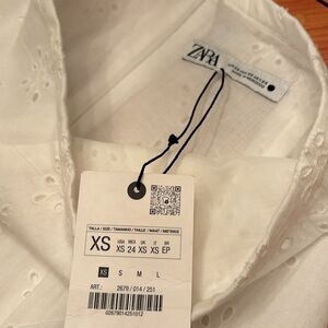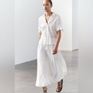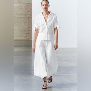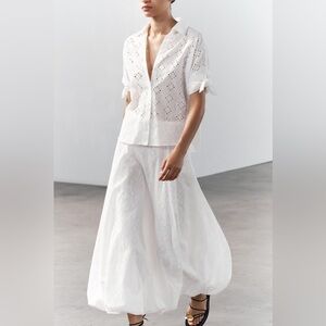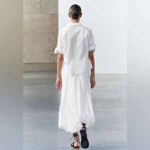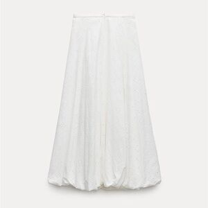 Zara embroidered 100% cotton white voluminous hem midi skirt sz.XS