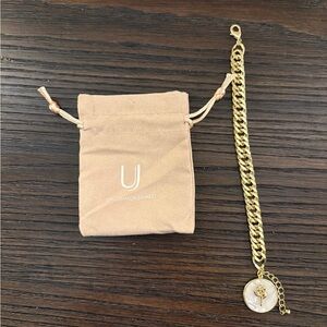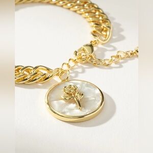 NEW Uncommon James Gold Pearlescent Rose Bracelet. Brand new. Chunky chain bracelet meets a mother of pearl inspired rose pendant.