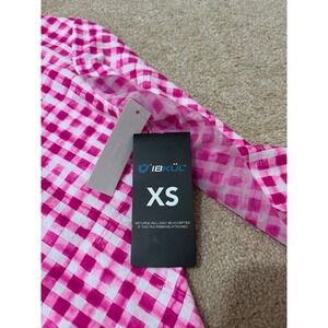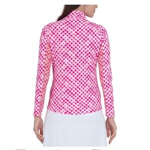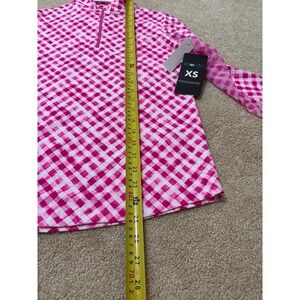 IBKUL Womens Long Sleeve Quarter Zip Golf Top Size XS Pink White Gingham UPF 50+