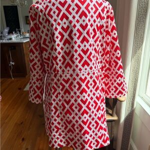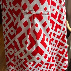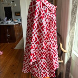 NWT Eden Court women's jacket featuring a bold red geometric pattern with bold buttons. Fully lined with pockets. 97% cotton, 3% spandex. Feels like a heavy poplin cotton.