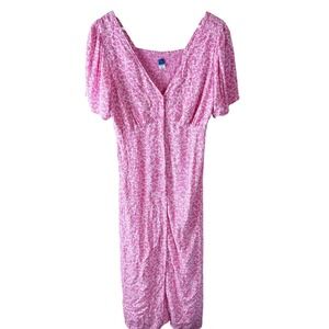 Keywords: Old Navy, Pink Dress, Floral Dress, Midi Dress, Womens Dress, Square Neck Dress, Puff Sleeve Dress, Cottagecore, Summer Dress, Casual Dress, Size L, Rayon Dress, Button Front, Vintage Inspired