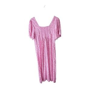 Old Navy Pink Floral Midi Dress Womens L Square Neck Puff Sleeve Cottagecore