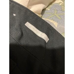 Excellent preowned condition! No flaws noted. Button intact. Zipper works. Outside each leg is a zipper. Both intact and work. No flaws noted. No snags. No color loss. Waist side to side is about 14 1/2". Stretch panels on either side. Inseam is about 32 1/2".