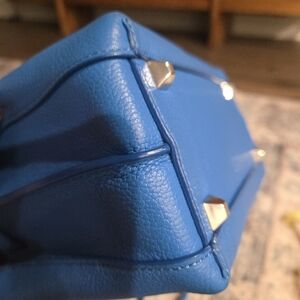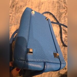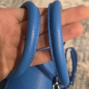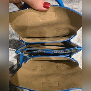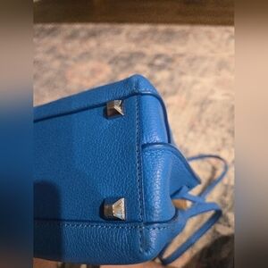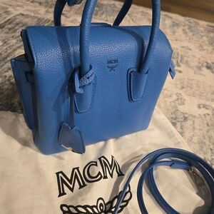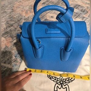 Crafted from premium leather in a striking blue hue, this Mini Milla tote by MCM combines elegance with everyday functionality. Its structured silhouette gives it a refined look, while its compact size doesn’t compromise on space—plenty of room for your essentials.