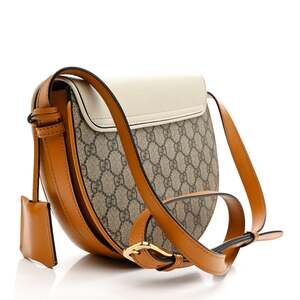Elevate your style with the Gucci GG Supreme Calfskin Small Padlock Messenger Shoulder Bag in Beige Mystic White Sun Oil. This luxurious bag combines the iconic GG Supreme canvas with premium calfskin leather for a sophisticated look. The small padlock detail adds a touch of elegance, while the adjustable shoulder strap provides comfort and versatility. Perfect for carrying your essentials in style, this Gucci messenger bag is a must-have accessory for the fashion-forward individual.