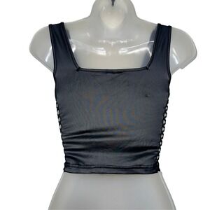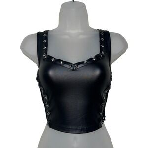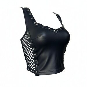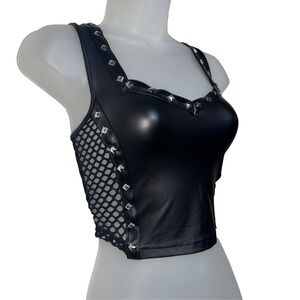 New Small Vegan Leather Goth Sleeveless Mesh Studded Crop Tank Top Bustier