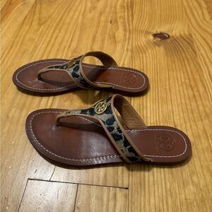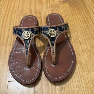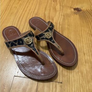 Tory Burch Cameron Thong Wedge Sandals Snakeskin-Embossed Women's Size US 5.5M