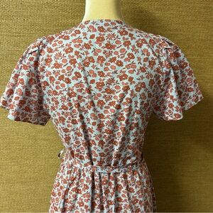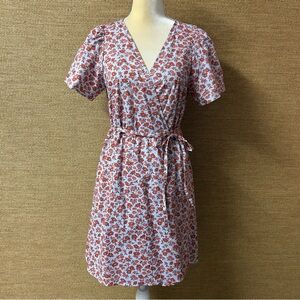 Madewell Dress Women's Medium Blue Burnt Orange Floral Wrap