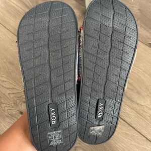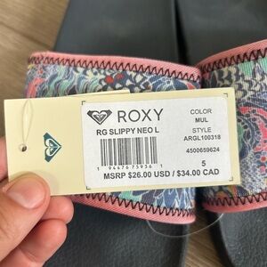 Step into comfort and style with Roxy's floral slide sandals. Featuring a vibrant multicolor design on a navy blue base, these sandals are perfect for casual outings. Size 5. New with tags!