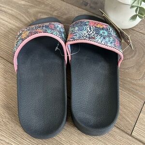 NWT Roxy Girl Floral Slide Sandals - Navy Blue Sole and Multicolor Strap Size 5