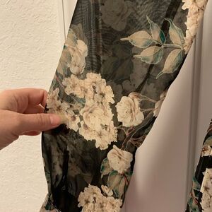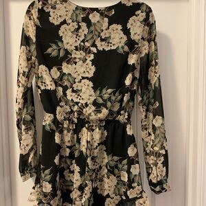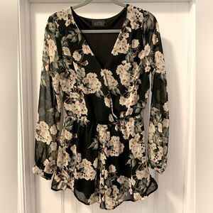 ASTR Floral Romper Size Medium Chiffon Style Material Long Semi Sheer Sleeves