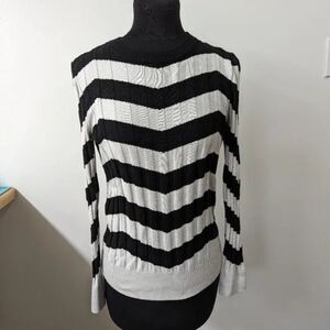 Derek Lam Ribbed black and white chevron stripe super Soft luxe sweater Size XS