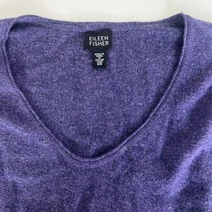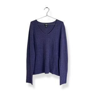 Eileen Fisher Merino Wool Blend Purple V-Neck Long Sleeve Soft Stretch Sweater