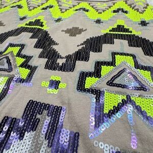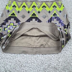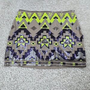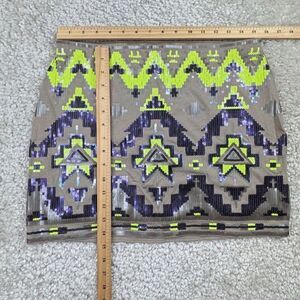 Express Aztec Sequin Stretch Skirt Gray Neon Green NEW