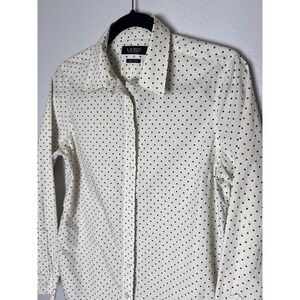 LRL Lauren Ralph Lauren Womens Sz M Cotton Button Up Long Sleeve Shirt Polka Dot